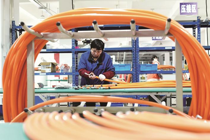 昨天,工人在海安高新區(qū)內(nèi)的江蘇恩達(dá)通用設(shè)備集團車間趕制新能源乘用車高壓線束訂單。正值年末,海安各工業(yè)企業(yè)開足馬力搶效率、趕訂單、忙生產(chǎn),全力沖刺“全年紅”。 顧華夏攝