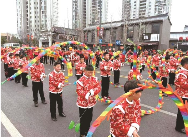 正月初三,如東新春民俗巡游在縣城主城區(qū)舉行。河口小學空竹社團的孩子們將抖空竹與傳統(tǒng)的舞龍技藝融合,在此次活動中驚艷亮相。五(2)班學生徐科和小伙伴們身手矯健地操縱著彩龍,空竹嗡嗡作響,彩龍行云流水,一招一式,令人叫絕。
