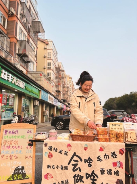 “今天有芝士餐包了,太好了!”“今天的司康好大啊,多少錢一個?”……2月26日下午5時,寶媽李李的甜品攤前已經聚集了不少顧客。“李李的面包都是當天做的,有的還是剛出爐,很新鮮,配料也干凈,給孩子吃放心?!毙^(qū)居民婁阿姨告訴記者。