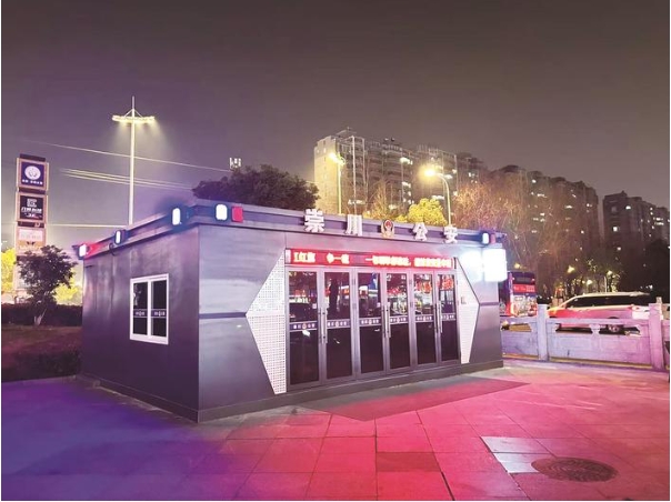 智慧警亭頂部的信號燈循環(huán)閃爍,與夜晚的霓虹交相輝映,正在織就一張數(shù)字時代的平安之網(wǎng)。