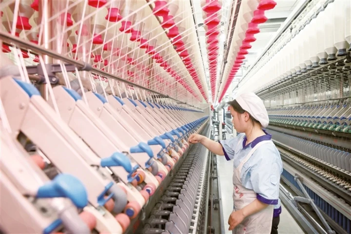17日,位于崇川區(qū)的江蘇大生智慧紡紗工廠生產(chǎn)繁忙。該智慧紡紗工廠是國(guó)家工信部和發(fā)改委認(rèn)定的“十四五”全國(guó)第一個(gè)“智慧紡紗工廠”,也是全國(guó)紡織行業(yè)首個(gè)運(yùn)用5G數(shù)據(jù)傳輸技術(shù)和智能管理云平臺(tái)的工廠。工廠萬(wàn)錠用工小于10人,生產(chǎn)效率在數(shù)字化紡紗車間基礎(chǔ)上提高了20%。 記者 許叢軍攝