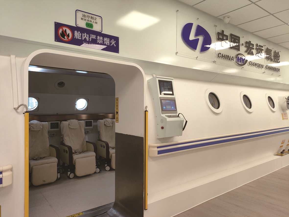 “醫(yī)院以智能康復為引領,重癥康復為優(yōu)勢,高壓氧治療為特色?!痹洪L仲崇俊介紹,院內擁有2000平方米的康復中心,中心配備了從上肢到下肢的11臺智能化康復設備,并結合中醫(yī)針灸、推拿、艾灸等傳統(tǒng)療法,形成中西醫(yī)結合的康復治療體系;同時,打造了目前南通地區(qū)最大的康復治療高壓氧艙,不僅實現(xiàn)了門增寬、同側開門,方便管理、安全性更好,還可同時容納34人進行治療;重癥監(jiān)護病區(qū)也是一大特色,設計床位58張,可為危重患者提供全天候、立體化的精準醫(yī)療照護。