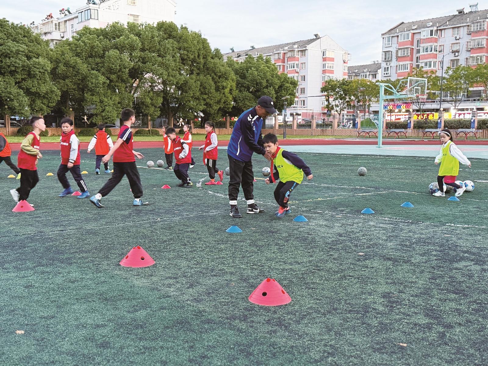 發(fā)布時間:2025-10-31 15:28:53 編輯:季肖寒 來源:“腳尖輕輕點,帶著球繞過去……”29日下午四點半,十里坊小學(xué)的操場上,一群身著球衣的孩子跟在體育老師身后,展開運球繞樁的日常訓(xùn)練,個個精神抖擻?!拔矣X得帶著球繞樁就像在跳格子,特別好玩!”一年級學(xué)生陸思媛額前的頭發(fā)被汗水濡濕,眼睛卻亮閃閃的。她這學(xué)期剛剛加入足球社團,已經(jīng)“喜歡上了踢球”。