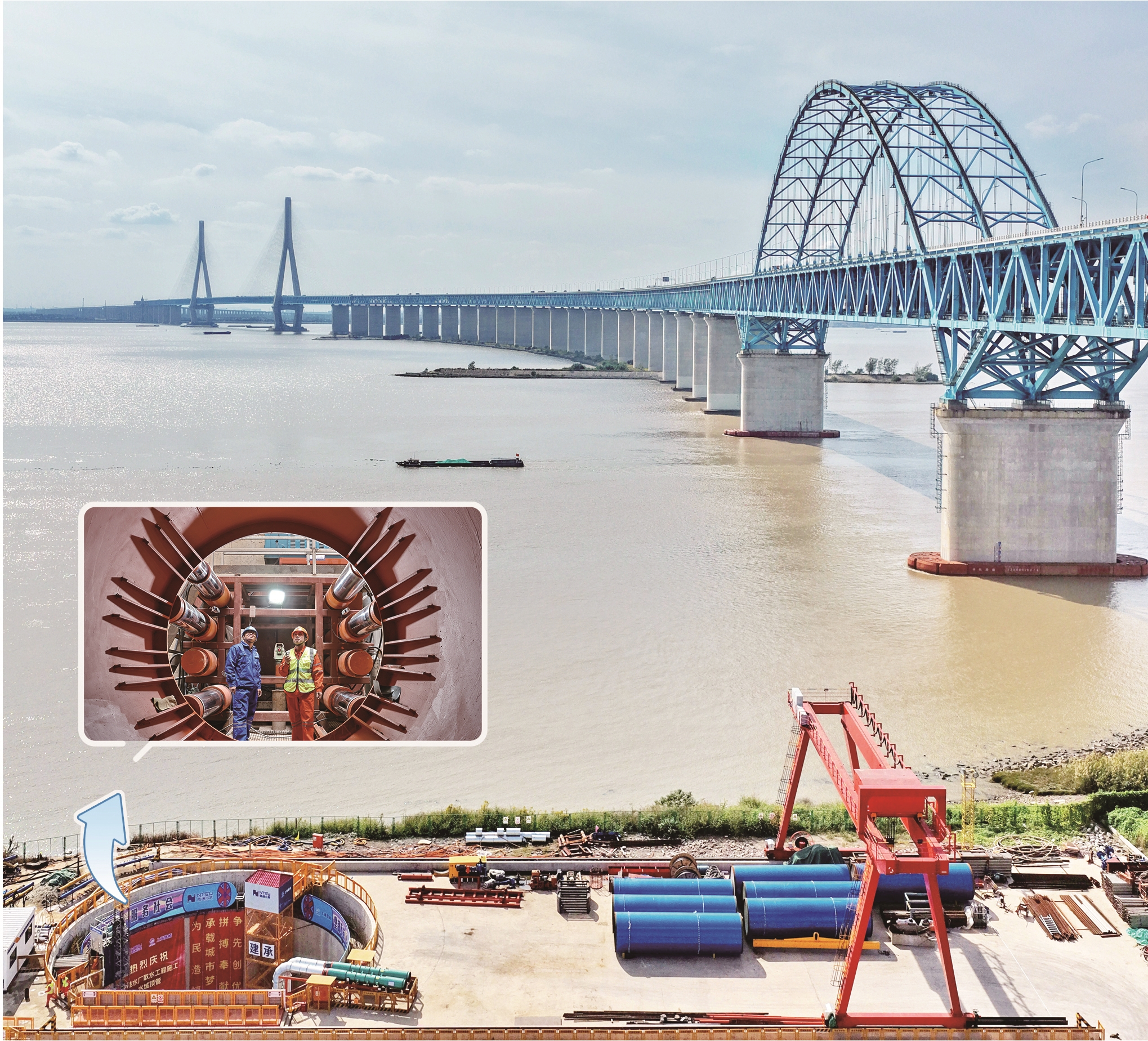 昨天上午,滬蘇通大橋東側(cè)的李港水廠取水工程項(xiàng)目現(xiàn)場(chǎng),深達(dá)48.4米的2號(hào)頂管井內(nèi),頂管機(jī)刀盤(pán)緩緩轉(zhuǎn)動(dòng),標(biāo)志著水域頂管穿江之旅正式開(kāi)啟(右圖 記者 許叢軍攝)。此次頂管作業(yè)一次頂進(jìn)3210米,刷新世界范圍內(nèi)大口徑鋼頂管單次頂進(jìn)長(zhǎng)度紀(jì)錄。
